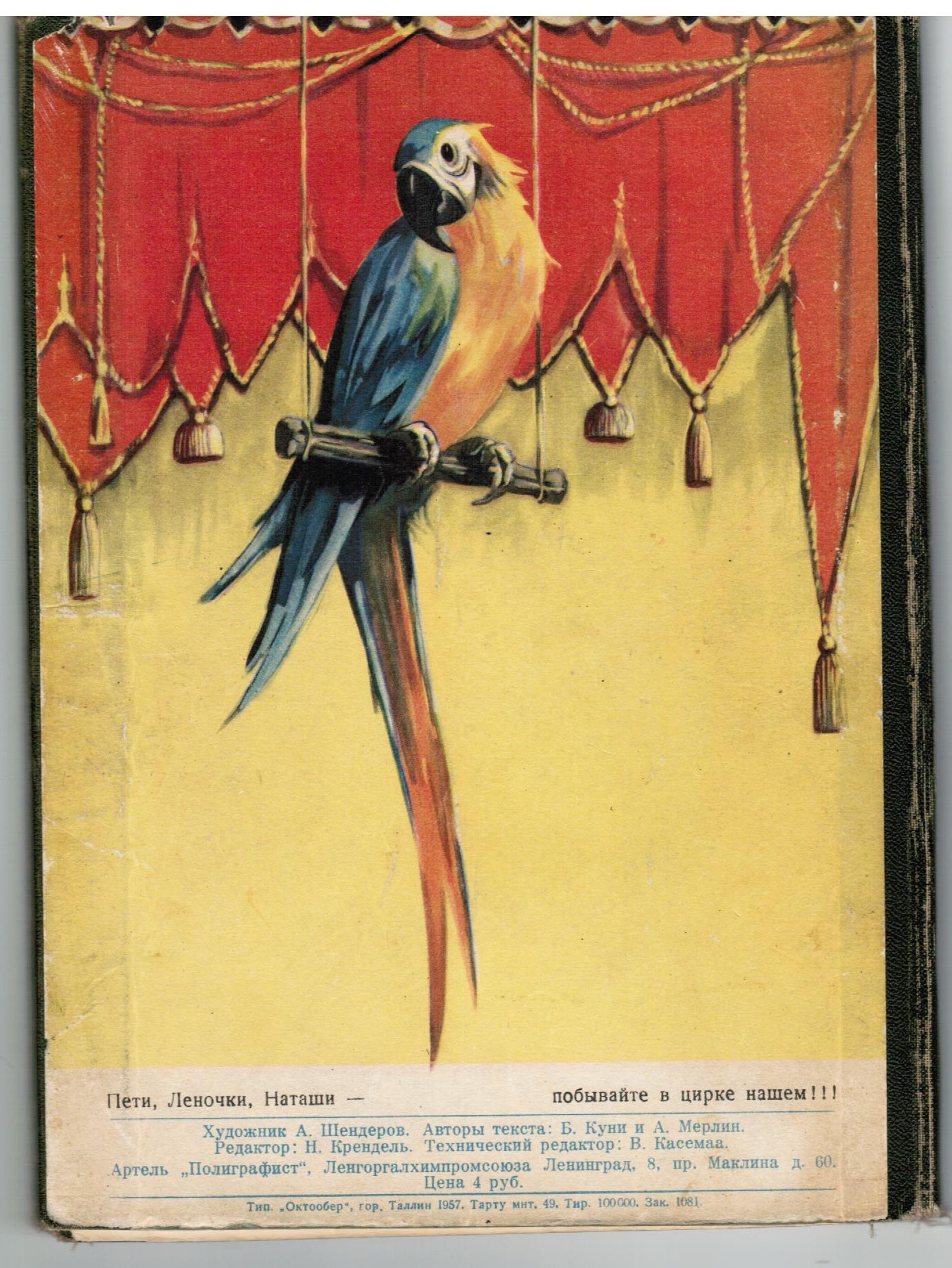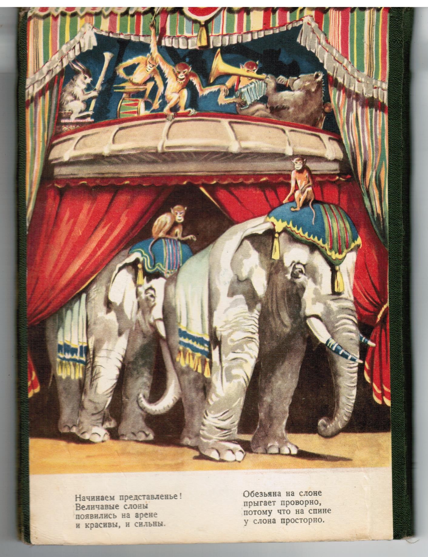 - Конечно, а как же. Это Чуковский, Маршак, Барто. Это классика детской литературы. Как мы любили все их произведения. Сейчас, наверное, это непонятно - какая-то Муха-Цокотуха, какой-то "выбегающий из маминой спальни хромоногий умывальник"... А Дядя Стёпа! Да что ты, такие герои! Незабываемые! А у меня ведь тоже была выпущена книжка-раскладушка для детей. Про цирк. В ней такие чудесные рисунки, а я с моим братом Борисом Куни написали к ним маленькие тексты. И эта книжка оказалась очень популярной, её дважды издавали!