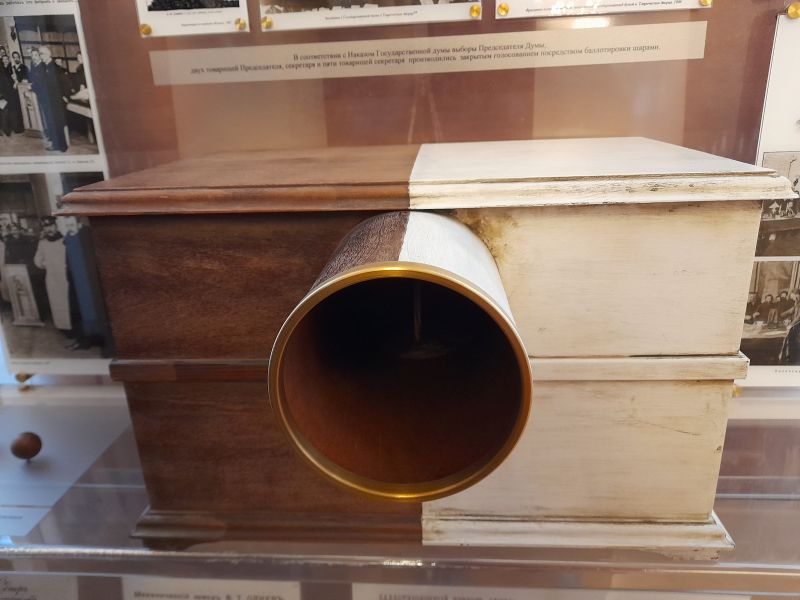 Также видим Механизм для тайного голосования, внутрь клали шар либо вправо, либо влево. Потом их считали. Так могли голосовать ЗА или ПРОТИВ.