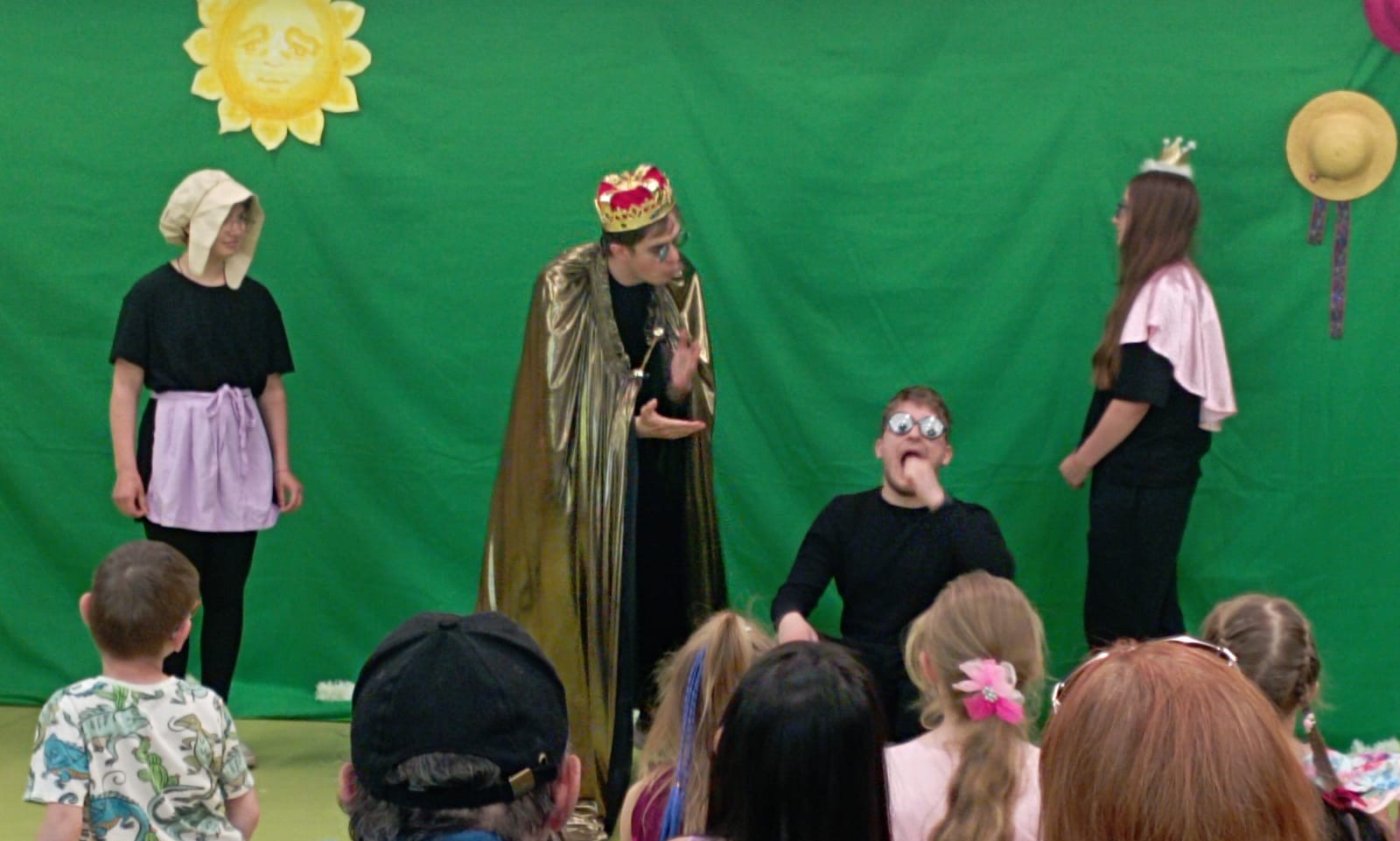 Вначале было, конечно, слово... И оно было грусновато – нам не хватало одного участника на мужскую роль и, как оказалось, ещё одного на роль ведущего – Скомороха. Конечно, можно было пригласить на эти роли кого-то из взрослых. Благо, такие надёжные друзья у нашей студии уже есть. Но ведь интересно было бы увидеть в постановке только подростков... Видимо, наше желание было правильным, так как, одно за одним, всё вдруг сложилось - появился и недостающий участник на роль Царя и участница на роль Скомороха-ведущего!